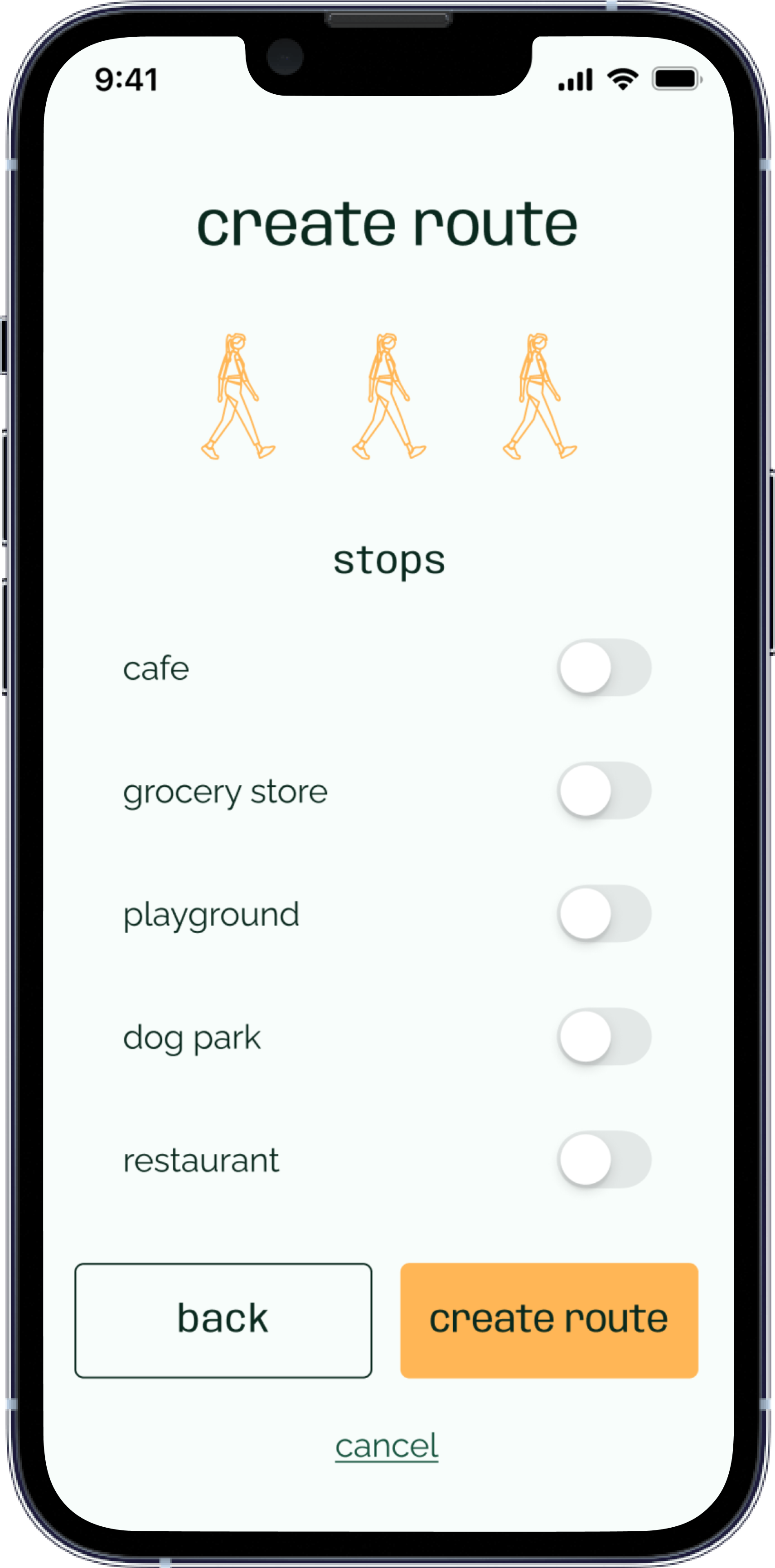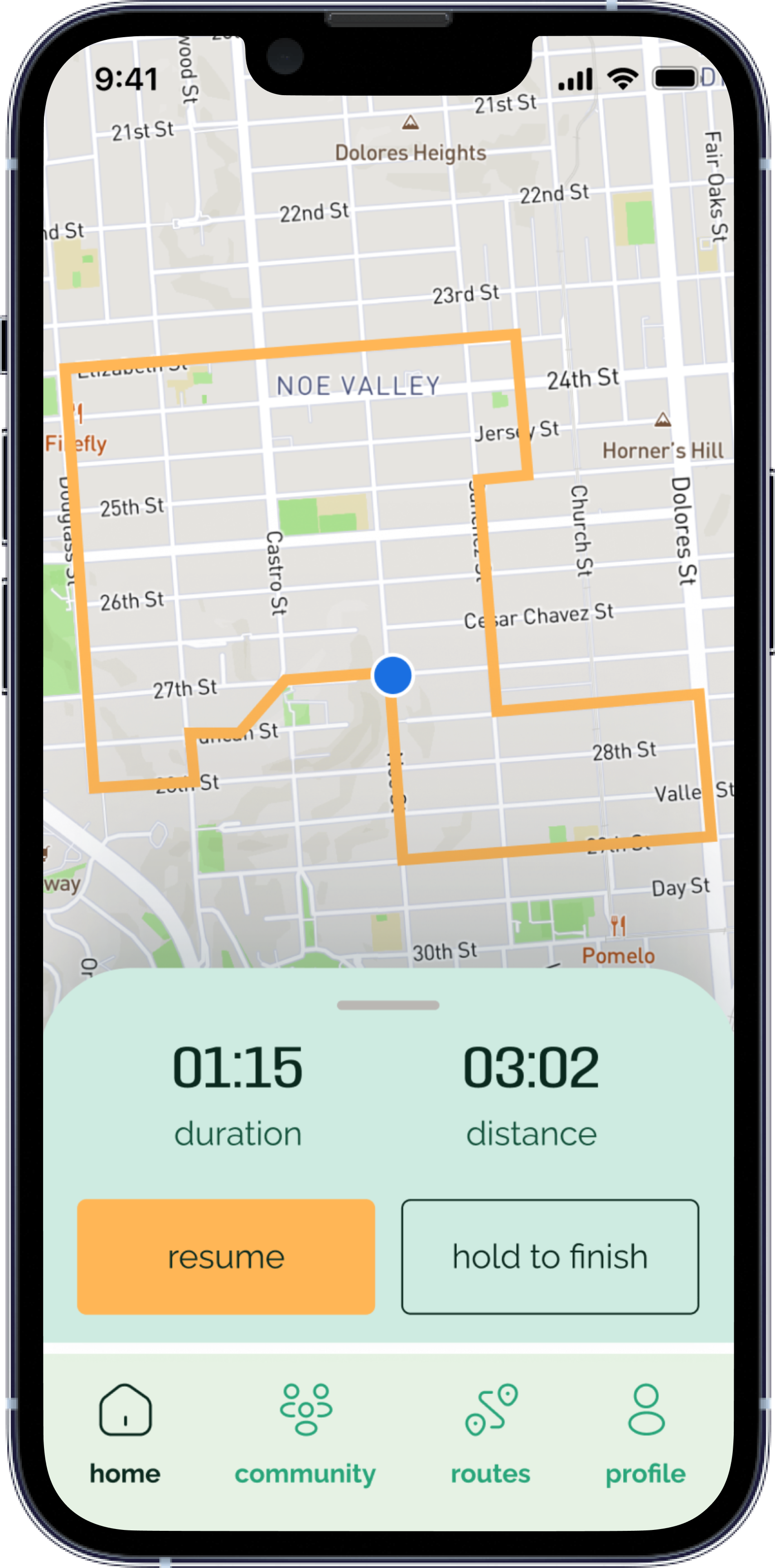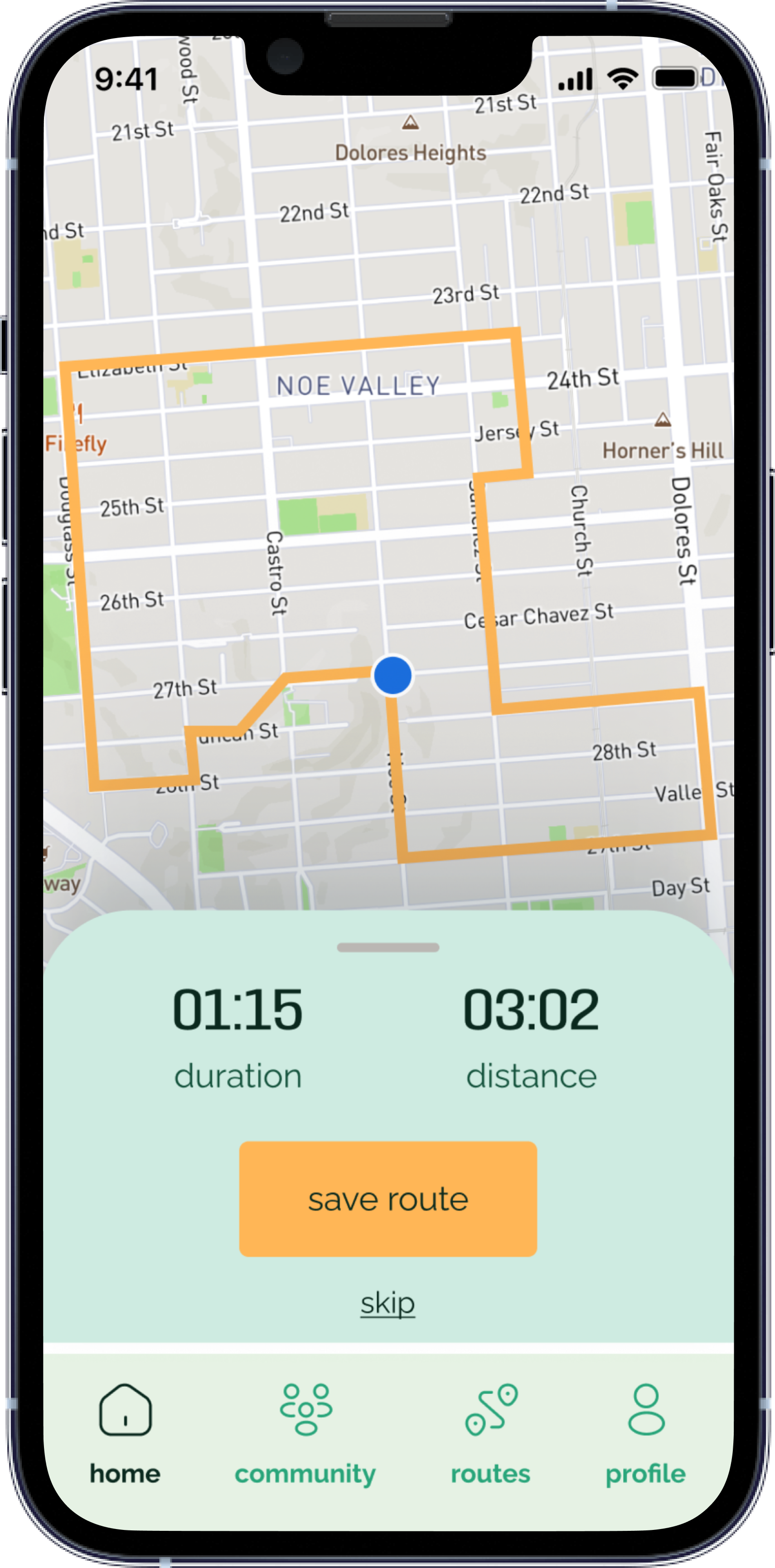 I would like to add a feature for users to meet up for walks more easily. Stride is currently built for users to explore their own communities but user research reminded me that people deeply value the relationships that they have with each other. Interviewees mentioned enjoying their walks more when they walked with a friend or called a love one. I would create a feature that could integrate with the user’s calendar thereby setting aside the time for both walkers to walk, chat and take in their surroundings together.