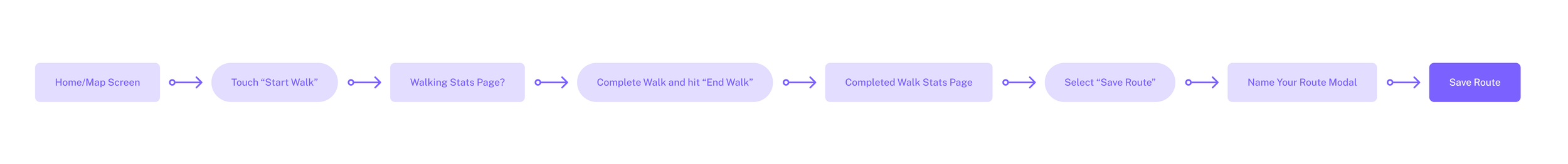 Before launching into a user flow I created a set of task flows that I could later knit together in order to track Will’s user flow of “Taking a Walk”. These task flows not only helped me understand the user journey that I was creating but they also guided my decisions for the Information Architecture of Stride and eventual sketches and prototyping.